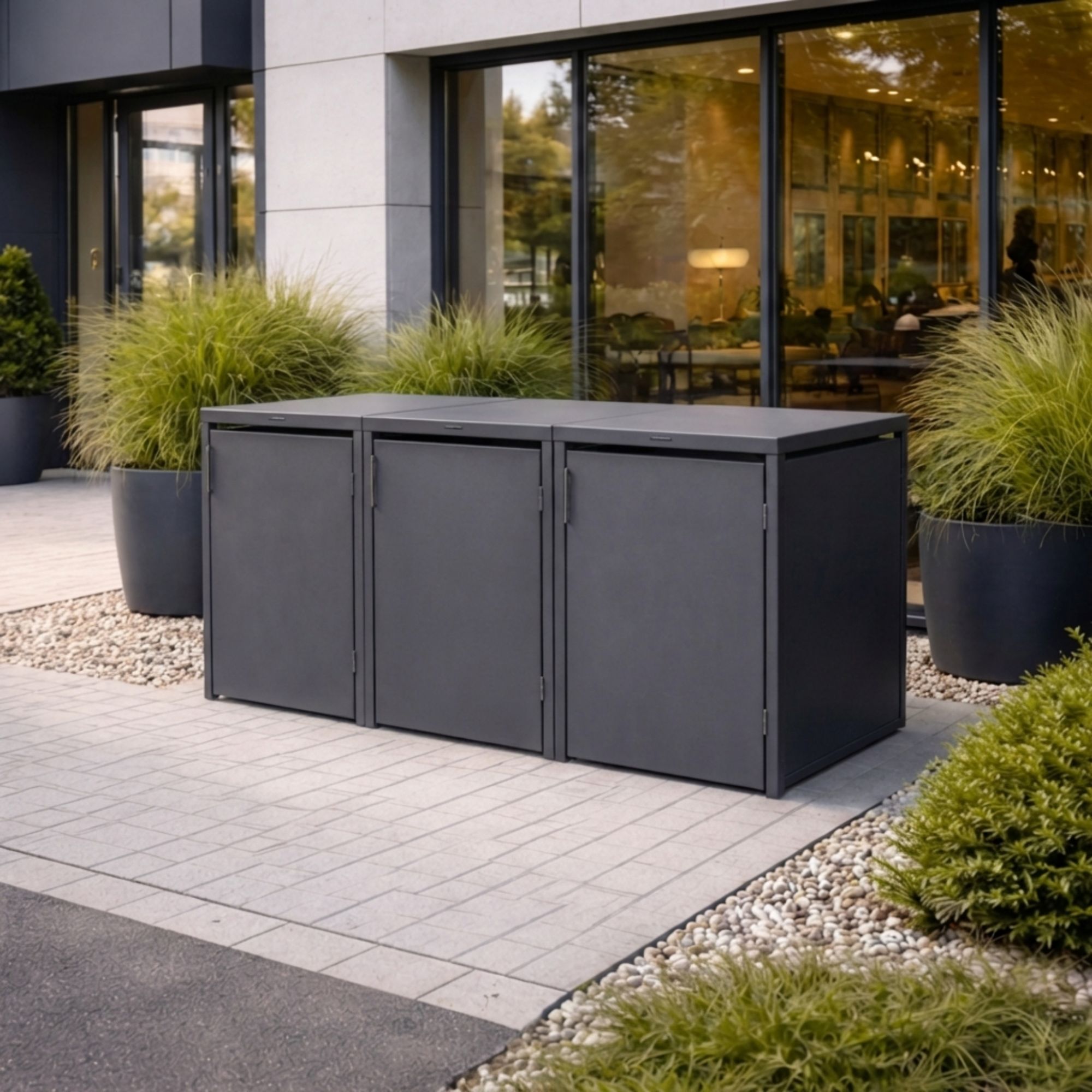 ✔️ Weerbestendige poedercoating (antraciet, RAL7016) De slijtvaste poedercoating beschermt tegen regen, vorst en zorgt voor een moderne, luxe uitstraling.